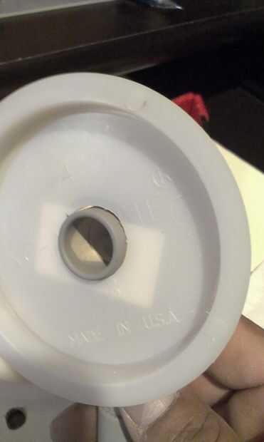 Mientras se están secando los dos puestos de conseguir el bloqueador de tubo PVC de 3"(2) colocar espalda con espalda junto y perfore un orificio de 7/8" en el centro en ambas piezas al mismo tiempo, así que usted tendrá los agujeros centrales de ambos bloqueador coincidentes entre sí y hará que el nivel de soporte de motor soporte sin más ajustes para hacer. Última prueba ajuste que los postes Asegúrese que caben en la caja y a través de la 3" PVC tubería bloqueadores. No pegarlos juntos en este momento. Ver fotos 15-22.