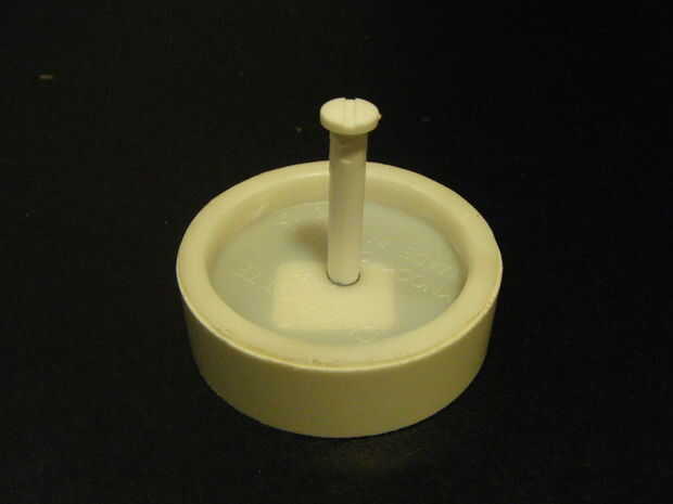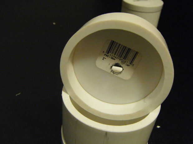 Corte (4) 3/4" espesor pieza de 2" PVC del tubo (Fig. 1,2,3). A continuación perfore un agujero de 1/4" en el centro de los golpes hacia fuera tapa. 2 lugar eliminar tapones juntos hacia atrás y perfore un orificio de 1/4" a través de las piezas. Asegúrese de que estos agujeros un centrado en el golpe hacia fuera tapa. Lo mismo para los otros dos tapones