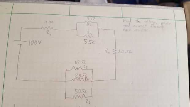 • Etiqueta cada elemento con su nombre (e.g. R_1, R_2, etc.) y valores conocidos. En este caso, el problema proporciona el voltaje de la fuente de tensión y la resistencia de cada resistor.