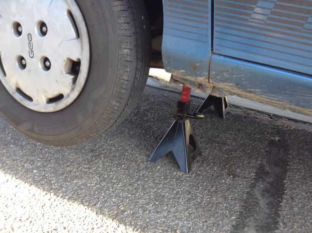 No subestimar el peso de la Geo. Como cualquier coche, es pesada, y matar o mutilar te si se desliza fuera de un gato y a usted.