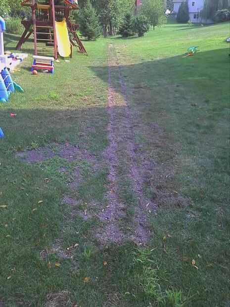 No divertida, pero retirar el exceso de suciedad antes de que la hierba tuvo la oportunidad de morir, luego rellenar los huecos entre el césped y donde la zanjadora había ejecutar con suciedad, lo sembrado y regado el infierno fuera de él.  Ahora jugamos el juego de la espera.  Caramba, no puede ser peor de lo que era.  Voy a publicar los resultados una vez que conseguimos una buena tormenta de prueba.