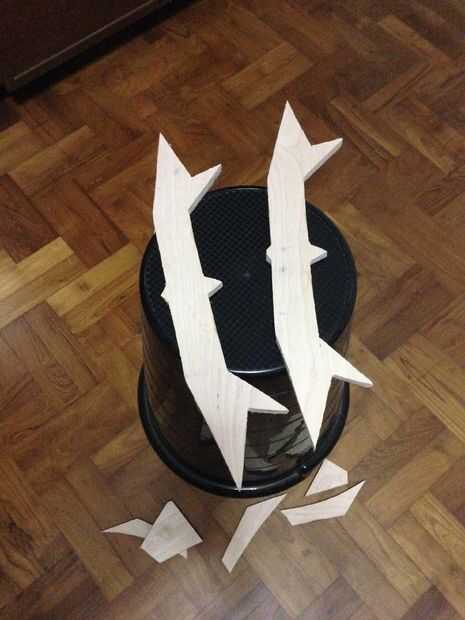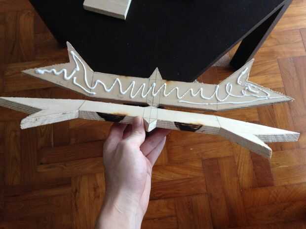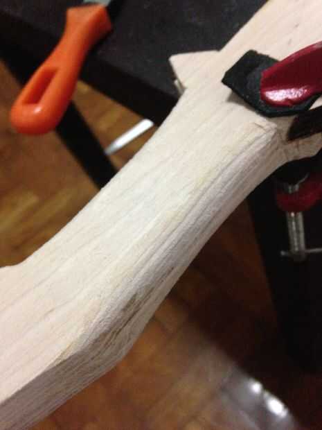 Después de cortar los pedazos hacia fuera y presentar en forma, tienes las 2 piezas listas a unir para hacer el mango.
