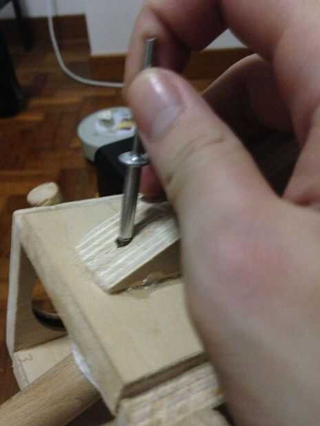 Para utilizar un remache, taladro un agujero cerca del extremo del mango que es el diámetro del remache, remache debe ser más largo que la longitud del agujero, inserte el remache en el extremo del agujero y luego usar el arma de remache. Usted necesitará hacer esto para cada uno de los extremos de la palanca conectada a los resortes de torsión.