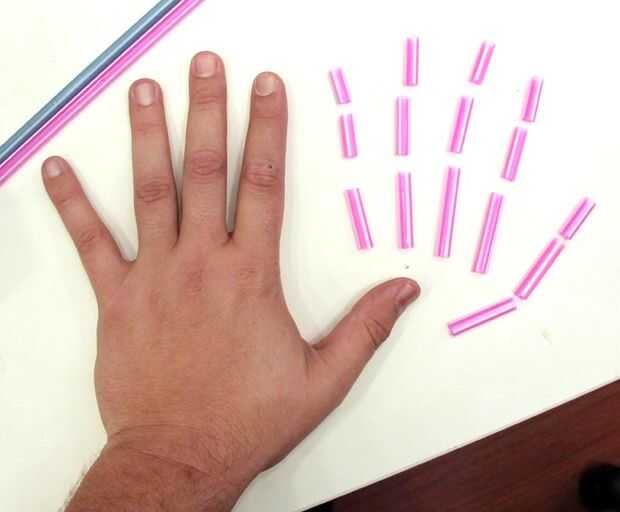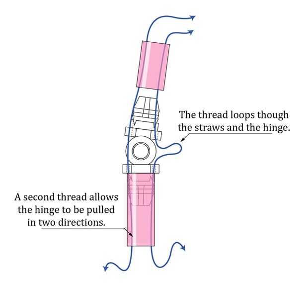 El tentáculo, los extremos de los dos hilos separados se conectan a otro pedazo de paja y es manipulado como un títere marioneta.