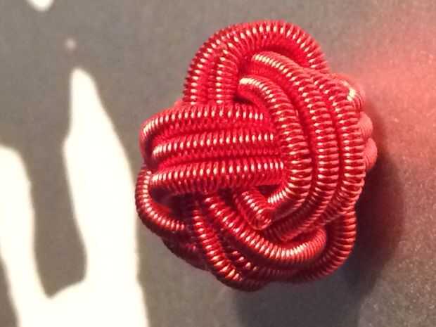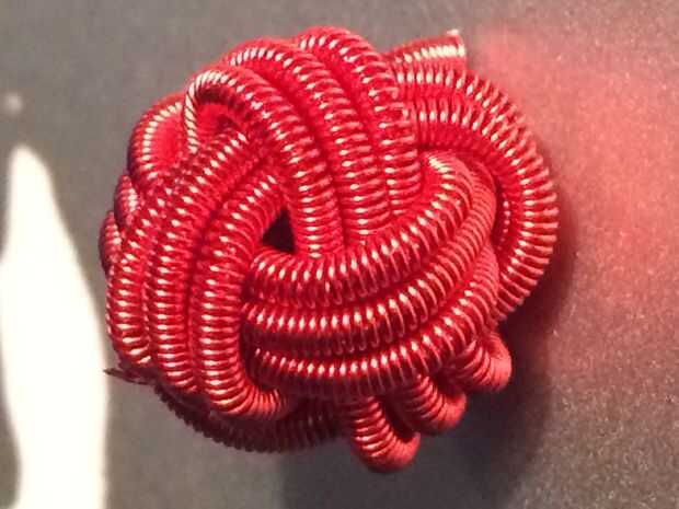 Una vez bien apretada a su satisfacción, clip del cable extra fuera. Luego para finalizar se fuera rodar el nudo entre las Palmas hasta que es redondo y las hebras son uniformes.