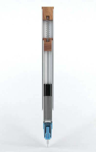1) Desenroscar el Rapidograph por lo que solo tiene la punta del lápiz en el cartucho de tinta. Esto encajará muy bien en el tubo de diámetro interior de 10mm. Mejorar el ajuste envolviendo algunos cinta aislante alrededor de la parte trasera del cartucho hasta que no haya ningún Bamboleo a la izquierda.