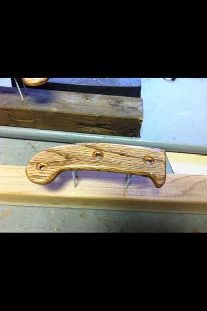Fijar las manijas a la cuchilla y la arena les hacia abajo hasta que quede un agarre cómodo en la mano. Luego retirar y agregar unas capas de aceite o lo que hice que es solo un acondicionador exterior capa clara.