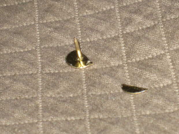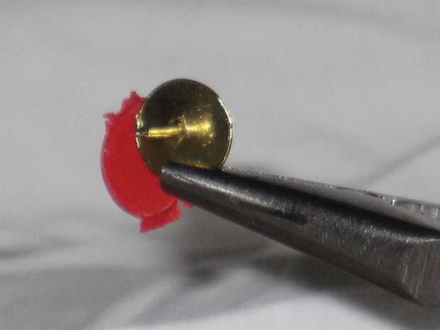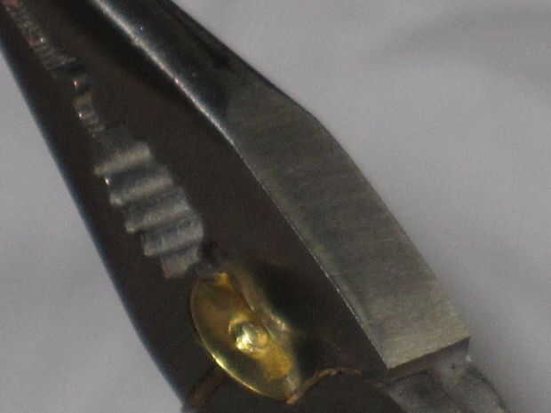 Después, empiezas a cortar el pulgar de tachuela para que cabrá en el chip de computadora.