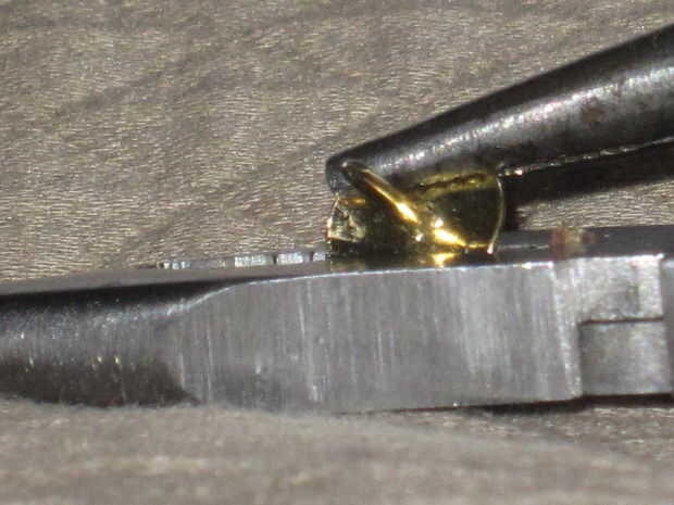 Cuando note un pliegue en la tachuela, empezar a doblar con el otro par de pinzas.