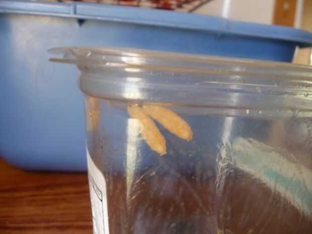 Los gusanos no baboso como gusanos, pero retuercen. No muerden, no importa lo que se ve en las películas. Incluso no tienes que tocarlos si tienes pinzas. La parte más desagradable de criar los gusanos es el olor de los contenedores de cebo Si utilizas carne. Si crees que va ser un problema, puede usar melón.