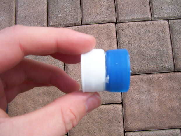Localice los dos que te tapas los agujeros perforados en antes. Luego usar pegamento, Epoxy o cinta adhesiva impermeable. Unir las dos tapas. Si su uso de la cinta, estirar la cinta uniformemente alrededor de la costura de las dos tapas. Uso de múltiples capas.
