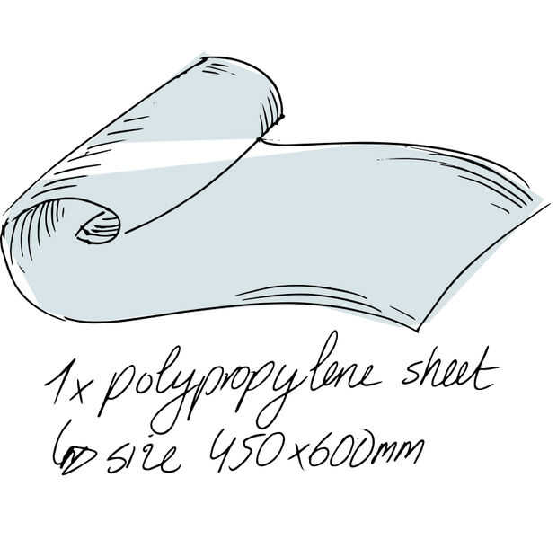 -Luego tienes que recortar las formas de derecho de la hoja del polipropileno. Puede hacer esto colocando el impreso hacia fuera hoja debajo de tu hoja de polipropileno y copia las líneas rojas de la plantilla. Estas líneas rojas son las líneas de corte!