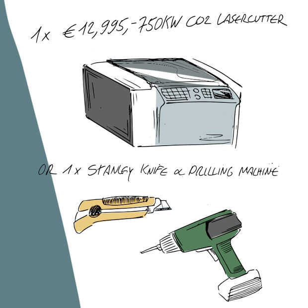 -En caso decide hacer este proyecto manualmente (que será menos precisa), necesita un lápiz, una regla, un cuchillo stanley y una máquina de perforación.