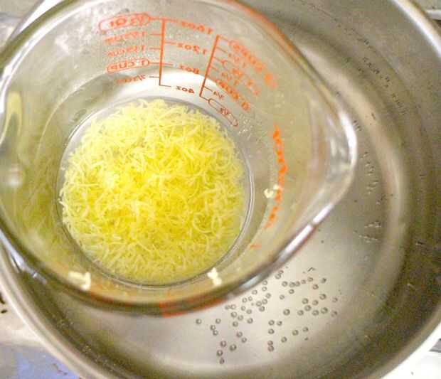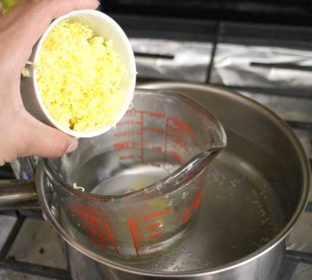 Vierta el aceite de coco y cera de abejas en baño María. Permiten derretirse completamente, unos 5-7 minutos a fuego medio, mezclando de vez en cuando. Mezcla cuidado, como cualquier utensilio que utilice puede convertirse en ceroso. Recomiendo usar un popsicle stick para fácil limpieza.