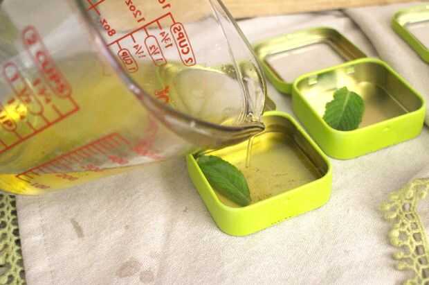 Tomar la mezcla de calor y vierta cuidadosamente en contenedores. Si utiliza recipientes de plástico como un viejo palillo chap stick, espere aproximadamente un minuto para la mezcla se enfríe para que no deforma el plástico. Más de un minuto y el bálsamo empezará a espesar y set! Usted puede simplemente re calor si esto sucede.