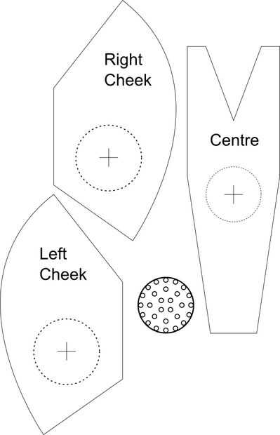Usted puede recortar los círculos en las mejillas ahora o más tarde. Yo aconsejaría cortando ahora. No hago esto pero porque no estaba segura qué tamaño necesito. Los círculos deben ser ligeramente más pequeños que el pequeño puede que esté utilizando.
