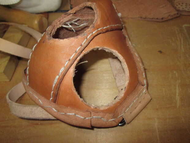 Corte una tira de cuero de 1-2 oz a 2" ancho y largo suficiente ir alrededor de la mascarilla completa (o utilizar tiras múltiples).