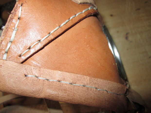 Uso pegamento para tomar la tira de cuero en posición alrededor del exterior de la máscara. A continuación, virar su espuma en el interior. Ahora, doblar la tira de cuero en la mascarilla, cubrir la espuma. Debe tener suficiente espacio para coser la tira de cuero en el lugar, atrapando la espuma interior.