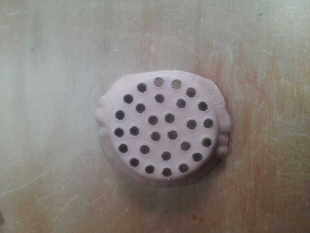 Una vez seco, deberá perforar agujeros en él. Incluí un patrón simple que hecho. La disposición de los orificios no importa, como puede pasar aire.