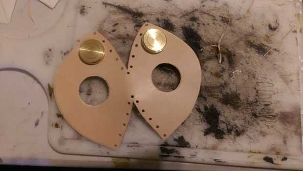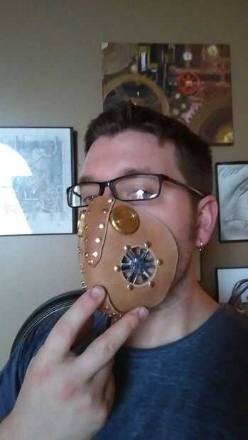 Repita este proceso para los agujeros del respirador, colocarlos aproximadamente en el centro de cada mitad de la máscara. Las parrillas de respirador son complemento de los filtros de tina de Lowe, y vienen en cromado o bronce final. Usted puede montar ellos encima de su agujero o empotrada detrás de él, que es como lo hice esta. Utiliza un metal de golpe a golpe hacia fuera los agujeros alrededor del borde de las coladeras y perforado los agujeros correspondientes en la piel y pegado en algunos remaches de doble tapa para probar el look.
