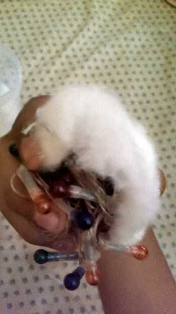 Envuelva un algodón alrededor de la bola / rodillo de luces. como se muestra arriba.