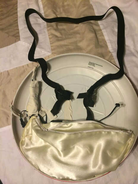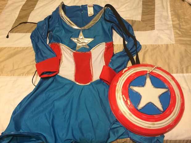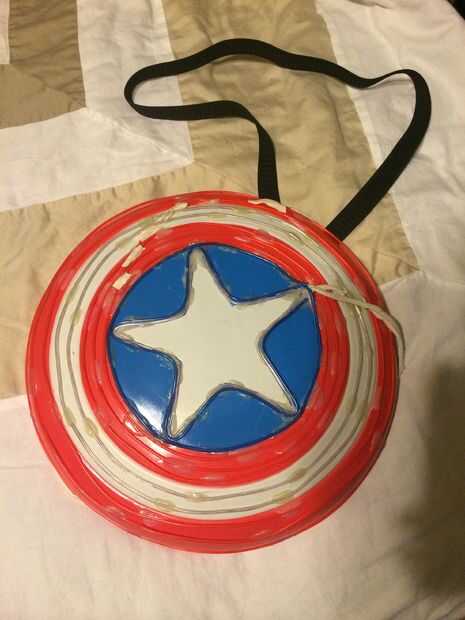 Cosieron un bolso rápido con una cremallera. Me caliente había pegado las baterías directamente a la pantalla, luego usa más pegamento caliente para fijar el bolso de la cremallera para el escudo, dejando mucho espacio para mi celular, billetera y algunas baterías de repuesto. Os adjunto una pulsera que compré en la tienda de la tela y listo... Monedero de Capitán América! Caliente pegué EL alambre a lo largo de mi patrón planeado, poner la cinta opaca sobre las áreas no quería verse brillar intensamente en la parte delantera y trasera el escudo.