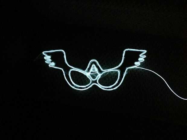Pegamento caliente en el exterior y que circunda los ojos junto con la 'A' en la cima estaba sobre él para la máscara. He añadido unos puntos en puntos débiles por lo que si no el pegamento caliente durante la noche completamente no caiga. La cola sale de la parte posterior está todavía encendida, envolvió cinta aislante alrededor de las partes que no quería visible.