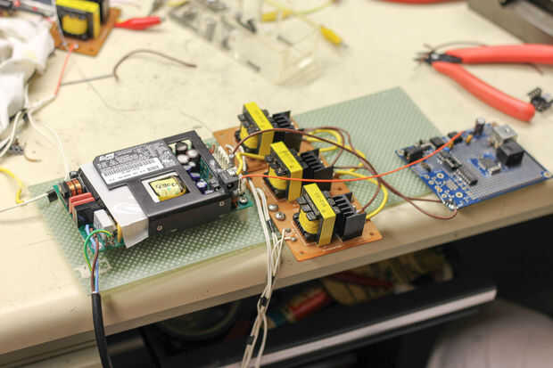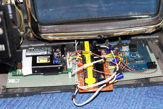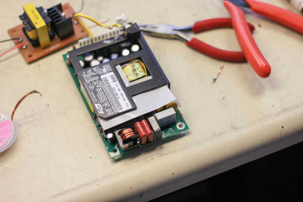Aquí estoy usando una fuente de alimentación grandes similar a las encontradas en una PC de escritorio para alimentar tres separadas juntas driver EL que viene con los paneles del (uno para cada uno de los tres paneles que estoy manejando). Al principio que probé usando solo EL driver sino el brillo que sufrió, así que até tres pilotos en la gran oferta. Idealmente me hubiera gustado tener un gran panel EL que se adapta a la pantalla de mi TV perfectamente, pero no tener suerte, así que tuve que usar tres paneles EL grabado juntos. Grabar los tres paneles juntos no se veía tan buena, así que tuve que hacer algunos ajustes (vea el paso siguiente).