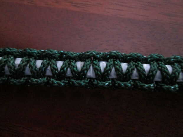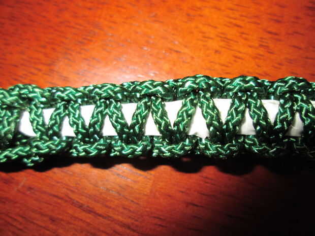 Hola todos esta es una nueva idea de minas. Es un resplandor en el collar de paracord oscuro. Fue hecha con cinta adhesiva envolviendo paracord y despues me pone una cosa cobra alrededor de por lo que protege la cinta del conducto.