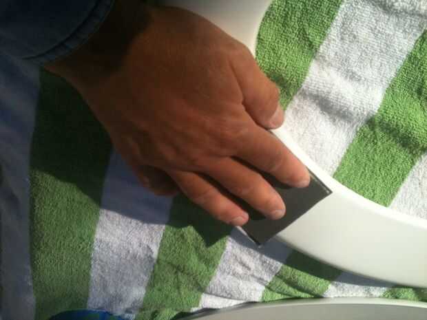 Tenga cuidado de no a la arena a través de original acabado en blanco. Si arena a través de usar una lata de "Laca" blanca como una capa base para reparar el acabado blanco sólido. Utilizando esmaltes baratos resultará en pintura de elevación o las arrugas con la capa clara.