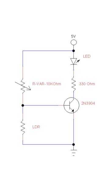 También la razón de la resistencia variable de 10K es que usted puede construir este circuito con casi cualquier tipo de LDR