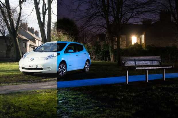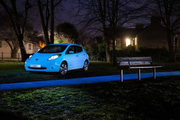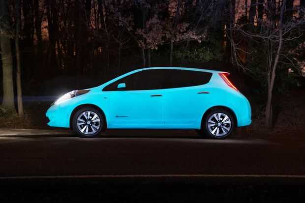 Nissan es el primer fabricante para aplicar la pintura del coche brillo en la oscuridad a un coche, su modelo eléctrico, el Nissan LEAF.