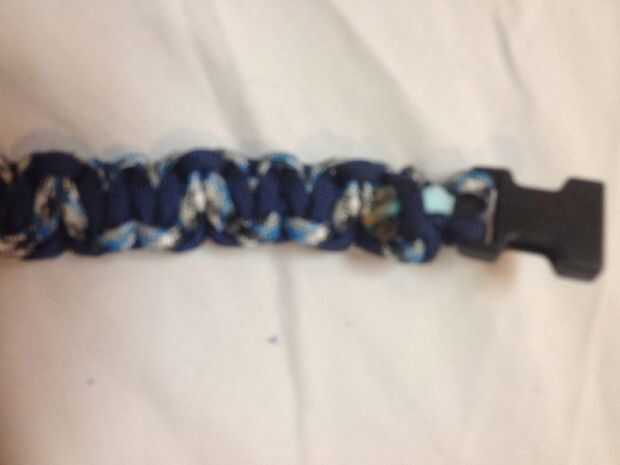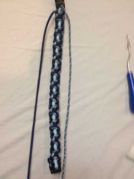 Congrats haya terminado de atar. Ahora lo quiero hacer es conseguir el ganchillo y lo puso a través del segundo lazo en el extremo. Gancho en una de las cadenas que ataban el nudo y tire a través. Luego hacer lo mismo con la otra cadena. Para la tracción del cable brilla en la oscuridad a través del final de la pulsera en el último nudo. Luego páselo a través del mismo agujero que otras cadenas fueron tirados de. Ahora cortar y quemar las cuerdas. Felicidades han terminado su primer collar de perro registro del animal doméstico.