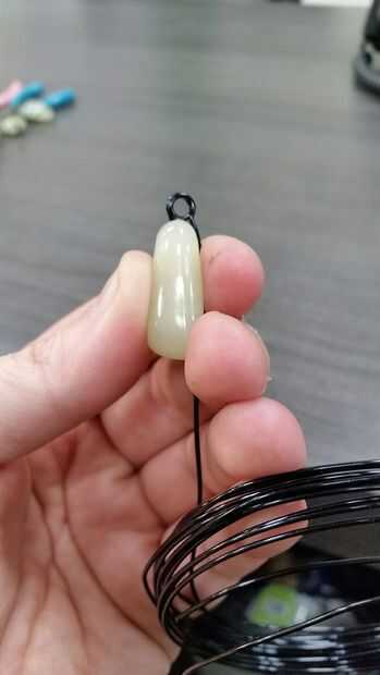 Lo primero es hacer un bucle en el extremo de su cable. Porque cada colgante tiene una diferente cantidad de alambre, tiendo que mina en el carrete hasta que es hora de cortar. Mucho menos basura de esa manera.