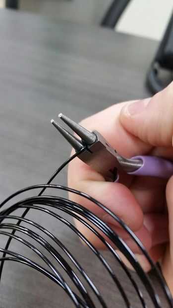 Use los alicates de punta redonda para hacer un lazo en el cable, envuelve el alambre alrededor de la base de las quijadas de los alicates dos veces para asegurarse de que era un lazo sólido.