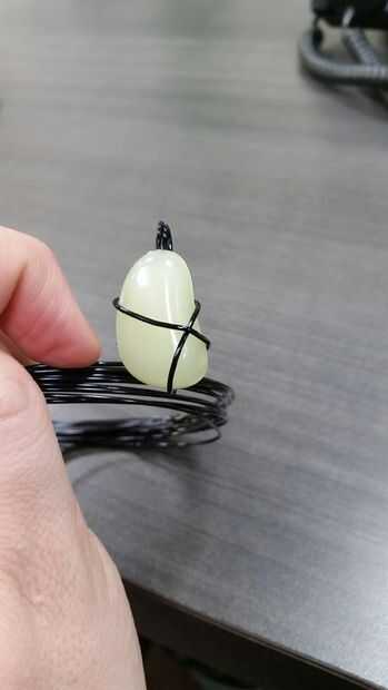 Literalmente, enrolle el cable alrededor de la piedra. Nunca lo hago del mismo modo dos veces, o más bien, tratar de no, aunque algunos están buscando similares... Quiero que cada regalo sea tan único como la persona que estoy dando.