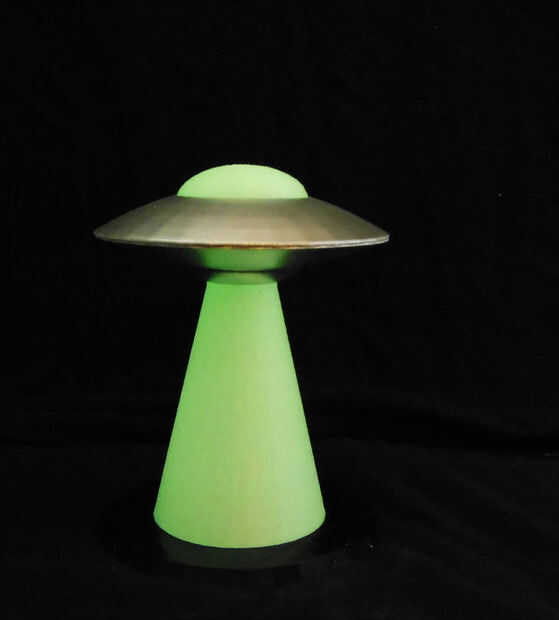 Inspirado en las abducciones estilo lámparas varios por ahí, hice un intento de diseñar y crear una versión simplificada de mini que era enteramente 3d impreso excepto las luces de LED. No sólo se enciende para arriba, pero también se ilumina en la oscuridad después de apagar la lámpara! Está diseñado de tal manera, que el OVNI en la parte superior puede ser intercambiado hacia fuera con un estilo diferente si se ocurre algo como mejor más tarde, o ir con algo más complejo.