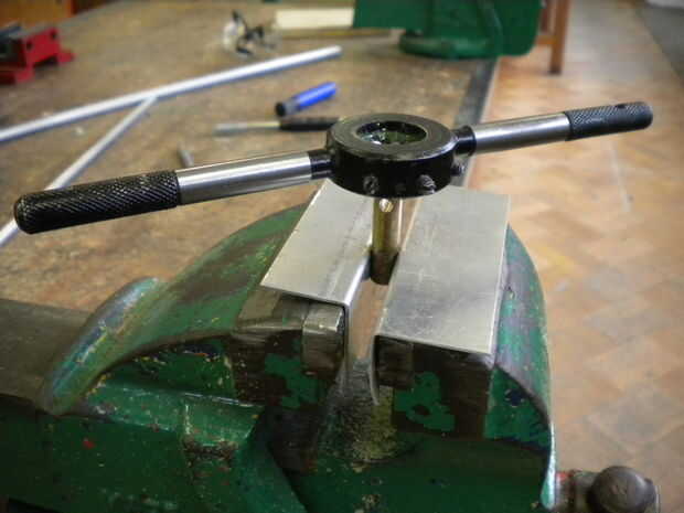• Utilizar un dado M8, iniciar el hilo con la acción de la cola del torno