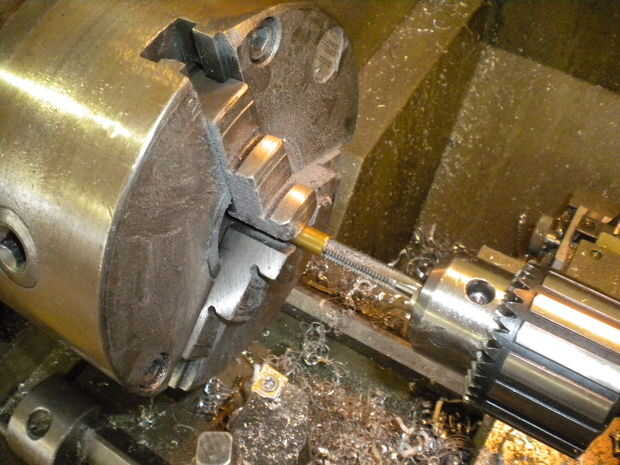 • Poner un grifo de M8 en el mandril y toque manualmente el hilo. No encienda el torno!