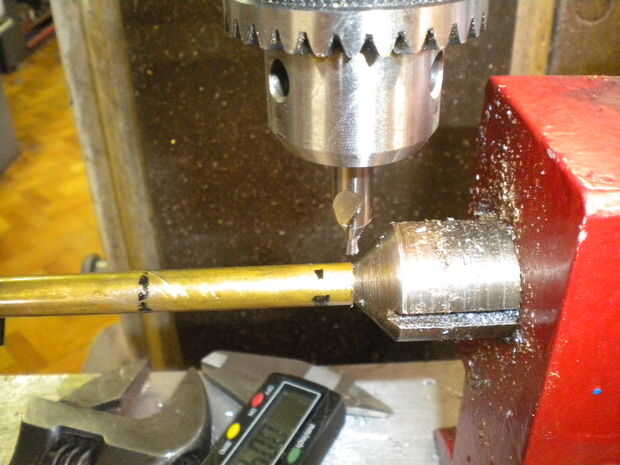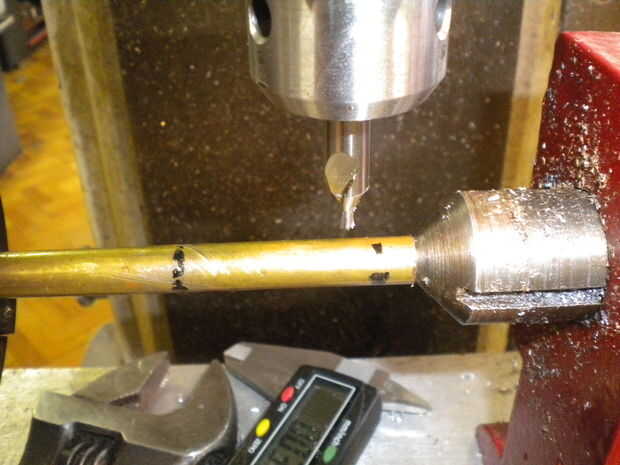 • Así que poner en el taladro de centro Ø10mm y alinear en el extremo de la pieza de trabajo