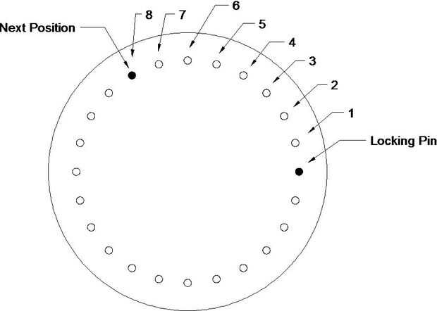 • Gire otro 8 posiciones en la cabeza de indexación.