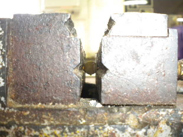 • abrazadera la otra mitad de la barra en la arboleda de v en la mordaza con la marca perfiles perfectamente vertical
