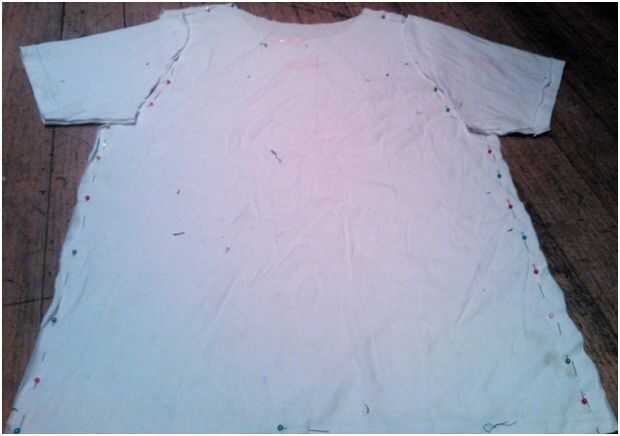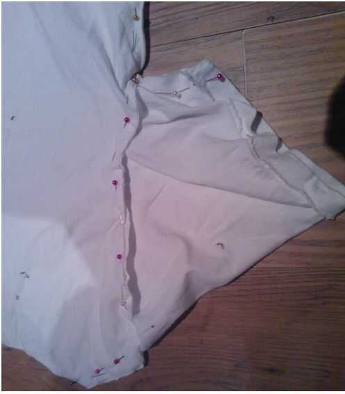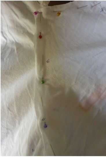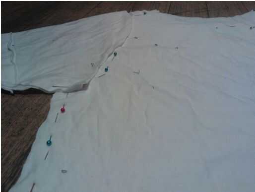 Luego necesitas Prender juntos las piezas para conseguir algo parecido a las fotos de arriba. Asegúrese de que las costuras de la tela que han cortado están todos alineadas perfectamente cuando les pin y coloque los pasadores de unas 3 pulgadas unos de otros.