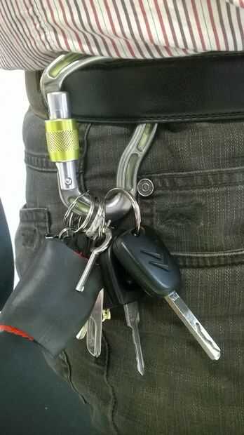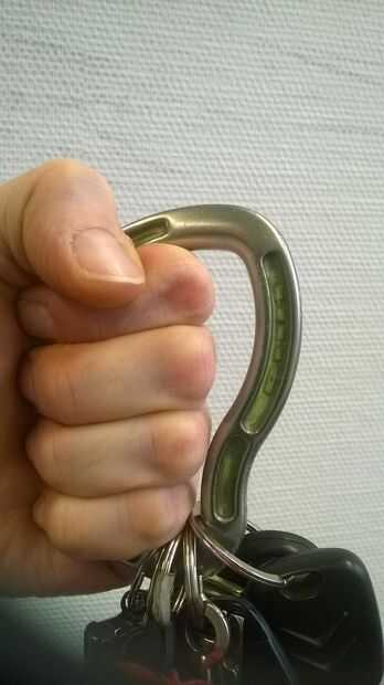 - Y por último, necesita algunos no leathal herramienta contra algunos malos - mira para un mosquetón que es bastante grande por lo que su mano se adapta cómodamente (nudillos de bronce están prohibidos poseer y llevar en muchas jurisdicciones, pero, bueno, eso es sólo un mosquetón, no ;-)