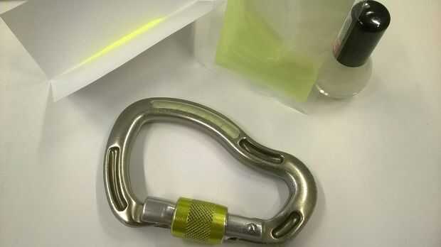 Sólo como una idea no he todavía probado hacia fuera (pero tal vez te interesa) - también debería funcionar si mezclar o cubrir el resplandor en el oscuro polvo con pegamento transparente de epoxy, que podría ser mucho más fuerte que el esmalte de uñas que he utilizado aquí.
