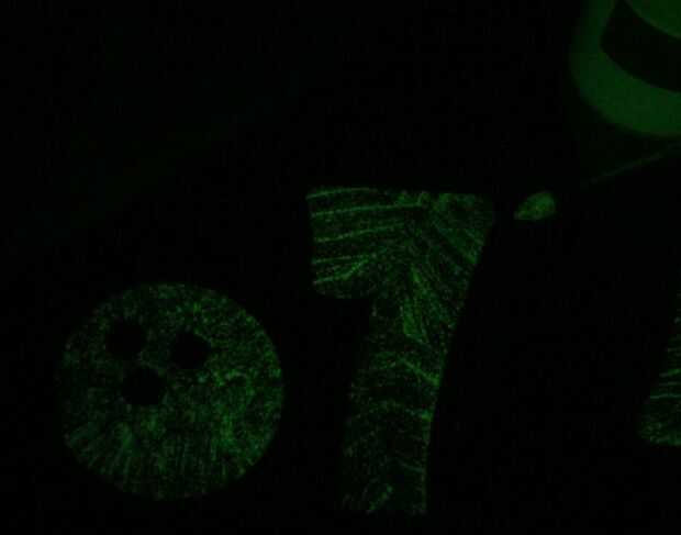 de luz negra, que activa las partículas diminutas casi al instante y resulta más fácil ver donde