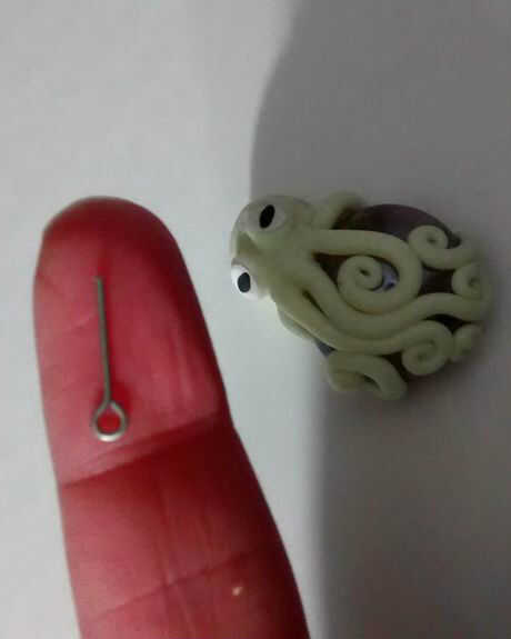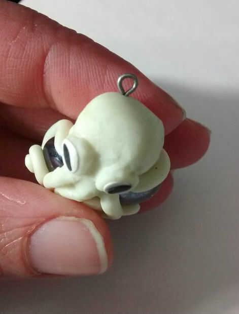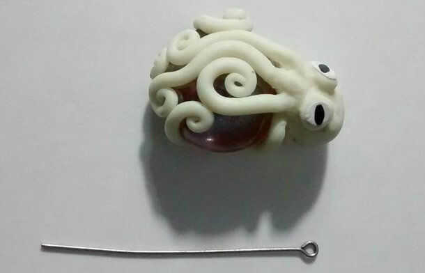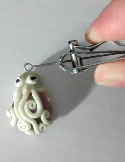 Corte hasta el tamaño que necesita y pegarlo en la parte trasera del pulpo. Tratar de adivinar lo que sería el centro peso sabio si se puede. Lo ayudará a colgar un poco agradable de un collar cuando todos los acabados.