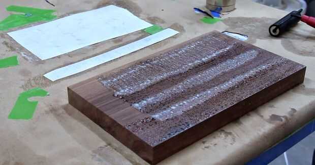 Ya que yo estaba usando la nuez, el papel de transferencia de toner no aparecen tan bien y pensé que el método de copia no tanto por lo que incluso no darle una oportunidad. En su lugar imprimí mi logo y había adherido a la madera utilizando adhesivo en aerosol. (Las partes restantes del logotipo pueden extraerse fácilmente con una pistola de aire caliente o secador caliente.)