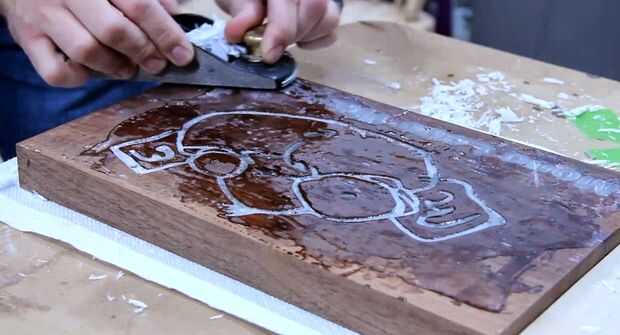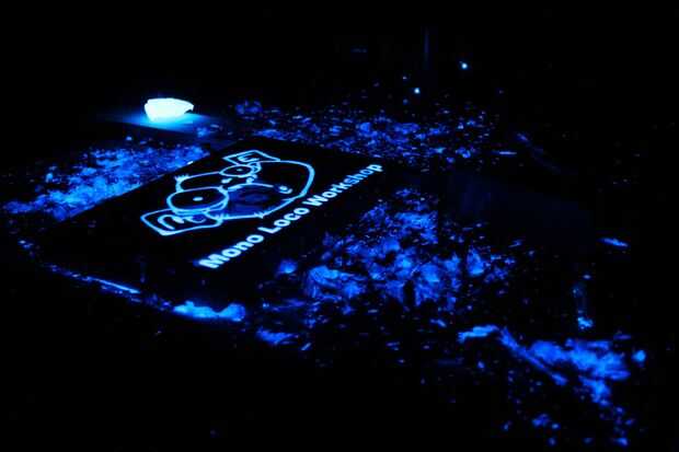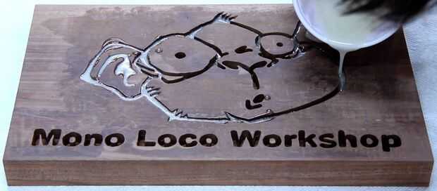 Ahora que todo el diseño se talla hacia fuera, es tiempo para llenar con algunos impresionante resplandor en el oscuro epoxi! Mezclar un lote lo suficientemente grande como para llenar todo el diseño (siguiendo las instrucciones del fabricante) y mezclar en algunos de eso polvo fotoluminiscente. Sólo utilicé 2 cucharaditas de polvo resplandor pero cuanto más utilice mayor será el efecto. Rellene todo el diseño y elaborar cualquier burbuja que se puede formar. Fabrica la mayoría le dará sugerencias para eliminar las burbujas pero la mayoría incluyen una pistola de calor, soplete, soplar o una pequeña vibración. (Utiliza una pistola de calor y tuvo resultados bastante decentes).