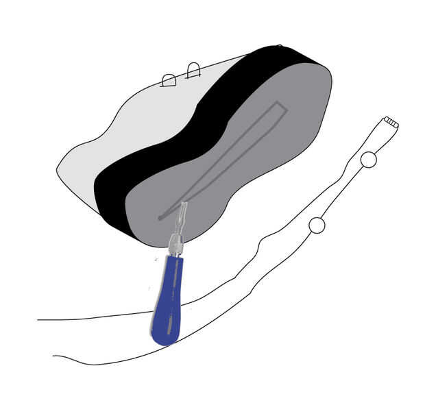 Luego en la parte posterior del zapato, probablemente querrá hacer un agujero diagonal desde la parte inferior de la suela a través de la parte superior atrás parte de la suela para que los cables pueden venir a través.
